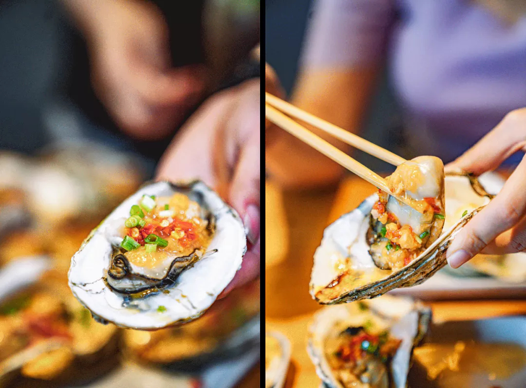 蚝肉入口丝滑软嫩,蒜香味瞬间爆发,蒜蓉和剁椒的辣,与肉质的鲜交织在一起,i了i了!