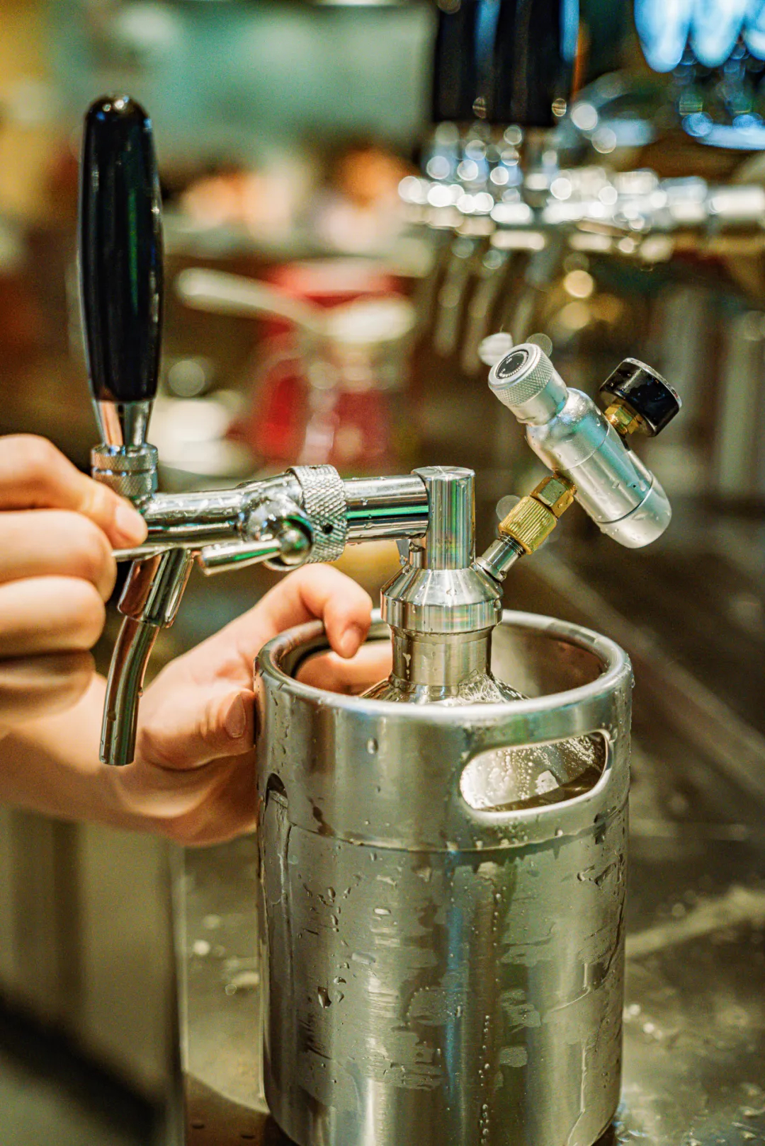 在木屋烧烤,鲜酿有扎壶、3L装啤酒筒,甚至还可以外带,2L装的氮气瓶装鲜酿让你在木屋烧烤之外,也能品尝到鲜酿的美味。