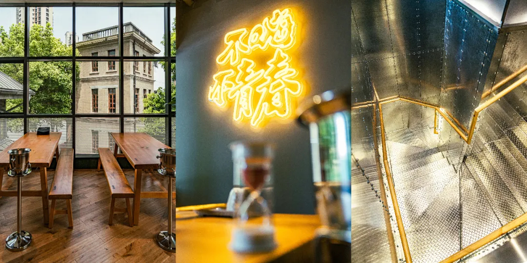 店内淡黄色的灯光,照射在工业风的装饰上,金属感满满,既酷炫又高级,出片率100%!